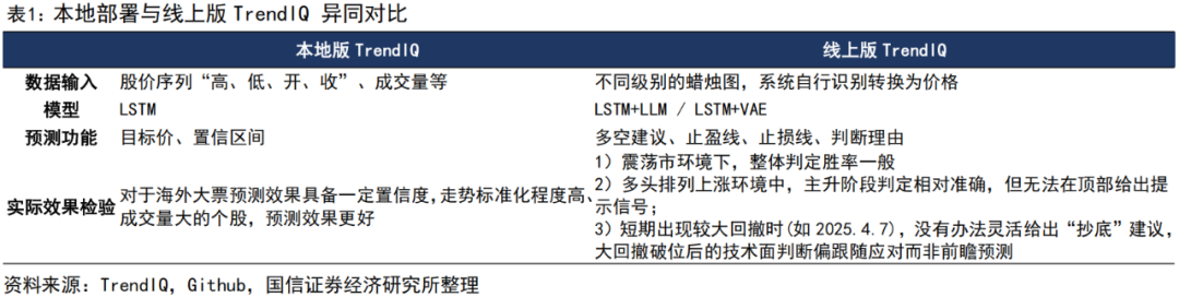 全球金融市场的核心特征在于其高度的复杂性、非线性和动态演变性。长期以来,市场参与者致力于寻找能够有效预测资产价格变动的“圣杯”。从目前存量的AI对股价、商品期货价格的预测框架看,过去基于RNN(循环神经网络)和LSTM(长短期记忆网络)的金融资产价格预测方法趋于成熟,在处理结构化数据(如量、价、技术指标)上优势明显,目前海内外已有开源版本能够接入金融数据终端,实现低延时数据响应与预测模型底层数据的更新。与此同时,这样的开源平台通过本地部署可以实现对轻量数据的本地化存储,预测活动亦可在本地进行,对于学界研究和部分存在商业机密需求的机构,具备一定的优势。TrendIQ就是这样一个相对成熟的金融资产价格预测平台,提供了本地化与网页版的选择,前者具备安全性和速度优势,后者则在易用性上更占上风。