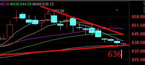 由于地缘局势缓和,天矿油持续弱势调整,不过已经逼近技术位636的支撑,短线观察其支撑力度,如获得支撑,或将出现反弹。仅供参考!