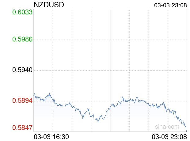 新浪外汇消息2026年03月03日,截至23时08分,外汇市场上新西兰元兑美元汇率跌破1新西兰元兑换0.5848美元。跌幅为-1.5488%