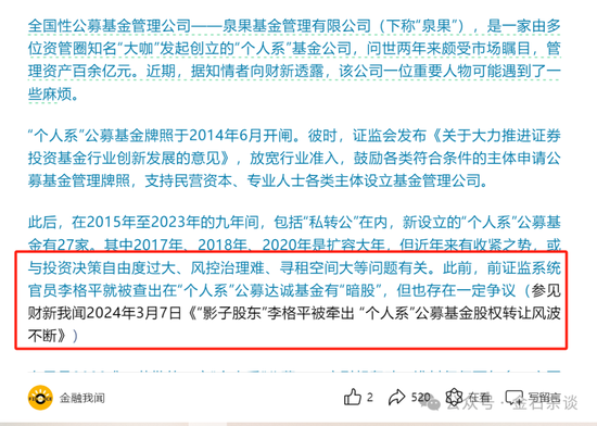 2)2023年11月中旬,泉果基金被渠道怒撕八宗罪:详情《渠道怒撕泉果八宗罪背后:赵诣一年赚3000万,钱思佳在任莉手下待了9年...》