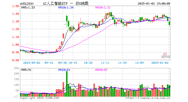 1月2日,AI人工智能ETF(512930)跌3.84%,成交额1.24亿元。当日份额增加2000.00万份,最新份额为8.86亿份,近20个交易日份额增加8200.00万份。最新资产净值计算值为11.05亿元。