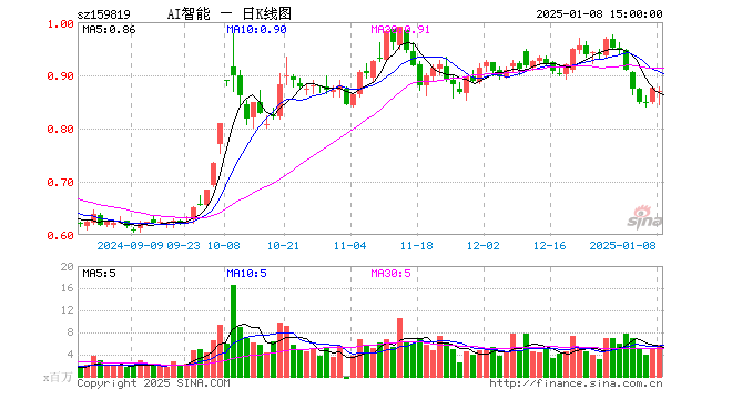 1月8日,人工智能ETF(159819)跌0.68%,成交额4.97亿元。当日份额增加6000.00万份,最新份额为96.71亿份,近20个交易日份额增加7.95亿份。最新资产净值计算值为84.23亿元。