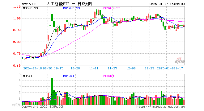 1月17日,人工智能ETF(515980)涨0.54%,成交额7837.03万元。当日份额减少700.00万份,最新份额为20.44亿份,近20个交易日份额增加1.62亿份。最新资产净值计算值为19.16亿元。