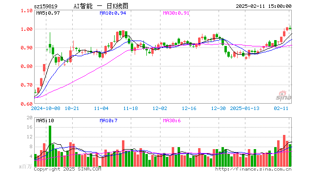 2月11日,人工智能ETF(159819)跌0.80%,成交额9.10亿元。当日份额增加2.81亿份,最新份额为108.41亿份,近20个交易日份额增加11.64亿份。最新资产净值计算值为108.18亿元。