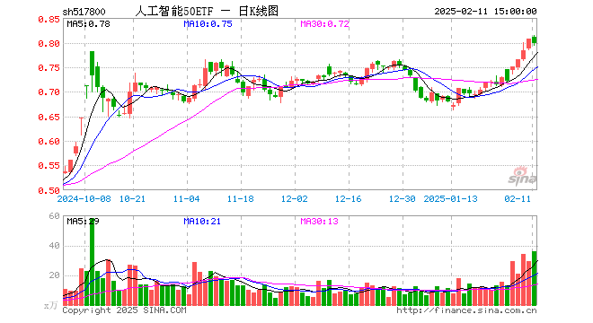 2月11日,人工智能50ETF(517800)跌1.12%,成交额2893.64万元。当日份额增加1800.00万份,最新份额为2.73亿份,近20个交易日份额增加3400.00万份。最新资产净值计算值为2.16亿元。