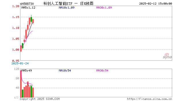 2月12日,科创人工智能ETF(588730)涨0.98%,成交额4582.38万元。当日份额增加300.00万份,最新份额为1.78亿份。最新资产净值计算值为2.03亿元。