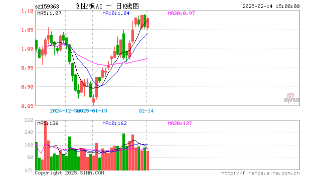 2月14日,创业板人工智能ETF华宝(159363)涨2.27%,成交额1.28亿元。当日份额减少5200.00万份,最新份额为6.85亿份,近20个交易日份额减少9500.00万份。最新资产净值计算值为7.38亿元。