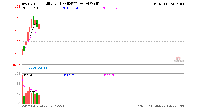 2月14日,科创人工智能ETF(588730)涨1.17%,成交额3779.28万元。当日份额减少300.00万份,最新份额为1.85亿份。最新资产净值计算值为2.08亿元。