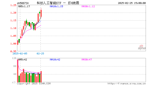 2月25日,科创人工智能ETF(588730)涨1.93%,成交额6606.89万元。当日份额增加800.00万份,最新份额为1.77亿份。最新资产净值计算值为2.15亿元。
