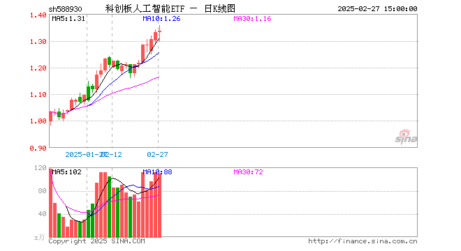 2月27日,科创板人工智能ETF(588930)涨0.45%,成交额1.46亿元。当日份额增加4400.00万份,最新份额为3.99亿份,近20个交易日份额增加2.98亿份。最新资产净值计算值为5.32亿元。