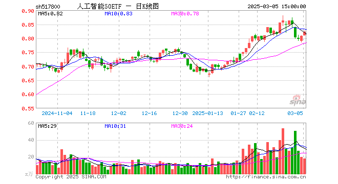 3月5日,人工智能50ETF(517800)涨1.73%,成交额1447.81万元。当日份额减少300.00万份,最新份额为3.23亿份,近20个交易日份额增加7800.00万份。最新资产净值计算值为2.66亿元。