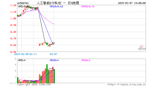 3月7日,人工智能ETF科创(588760)跌2.03%,成交额2.88亿元。当日份额增加1500.00万份,最新份额为17.39亿份,近20个交易日份额增加15.29亿份。最新资产净值计算值为10.93亿元。