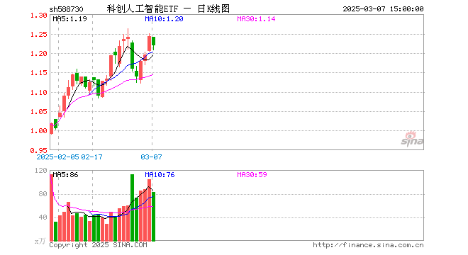 3月7日,科创人工智能ETF(588730)跌1.93%,成交额1.02亿元。当日份额增加1400.00万份,最新份额为3.09亿份,近20个交易日份额增加1.48亿份。最新资产净值计算值为3.77亿元。