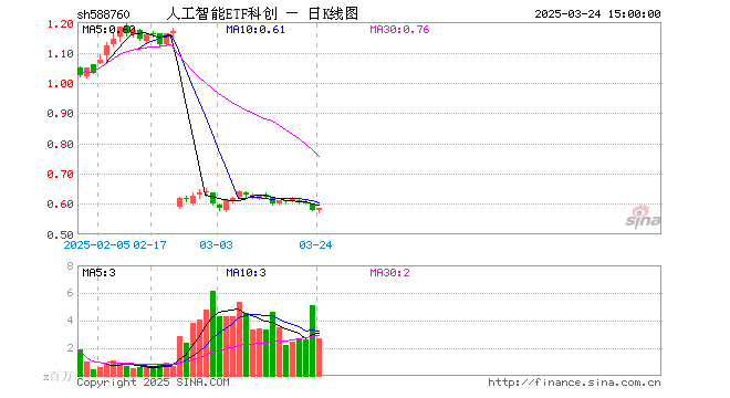 3月24日,人工智能ETF科创(588760)涨0.86%,成交额1.58亿元。当日份额增加600.00万份,最新份额为22.58亿份,近20个交易日份额增加14.88亿份。最新资产净值计算值为13.17亿元。