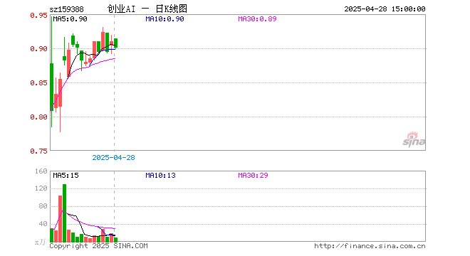 4月28日,创业板人工智能ETF国泰(159388)跌0.99%,成交额874.22万元。当日份额减少200.00万份,最新份额为2.52亿份。最新资产净值计算值为2.27亿元。
