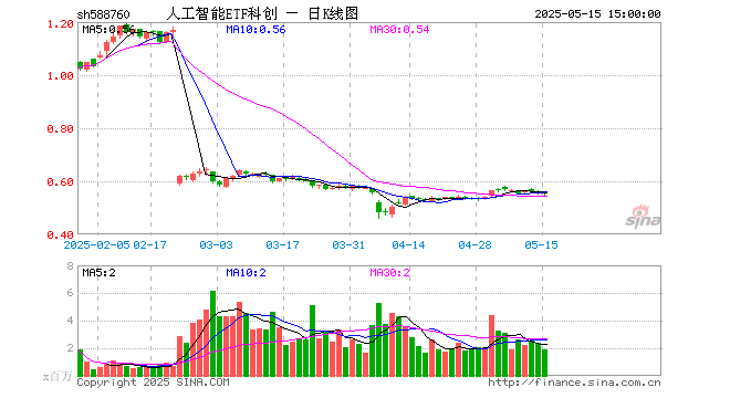 5月15日,人工智能ETF科创(588760)跌1.61%,成交额1.03亿元。当日份额增加4800.00万份,最新份额为27.02亿份,近20个交易日份额增加3.18亿份。最新资产净值计算值为14.87亿元。