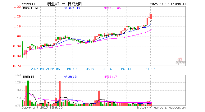 7月17日,创业板人工智能ETF国泰(159388)涨3.04%,成交额1845.18万元。当日份额减少100.00万份,最新份额为4409.48万份,近20个交易日份额减少3200.00万份。最新资产净值计算值为5383.98万元。