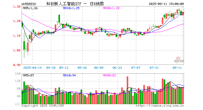 8月11日,科创板人工智能ETF(588930)涨1.70%,成交额1.10亿元。当日份额增加1800.00万份,最新份额为8.53亿份,近20个交易日份额减少7200.00万份。最新资产净值计算值为10.73亿元。