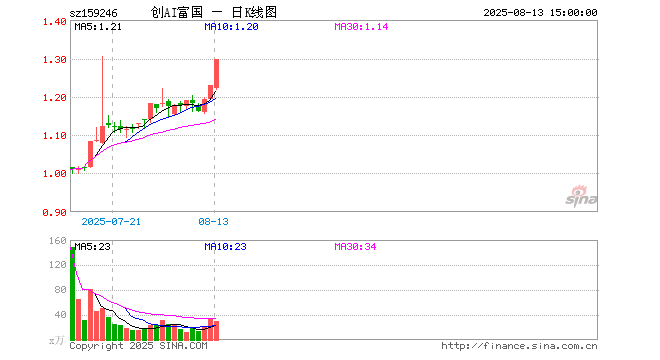 8月13日,创业板人工智能ETF富国(159246)涨5.37%,成交额3798.10万元。当日份额增加100.00万份,最新份额为6582.78万份,近20个交易日份额减少9300.00万份。最新资产净值计算值为8510.88万元。