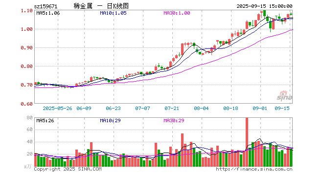 9月15日,稀有金属ETF基金(159671)跌0.37%,成交额3128.73万元。当日份额减少650.00万份,最新份额为5.04亿份,近20个交易日份额减少2400.00万份。最新资产净值计算值为5.40亿元。