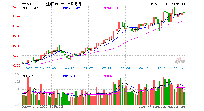 9月16日,生物药ETF(159839)跌0.23%,成交额2880.79万元。当日份额增加1650.00万份,最新份额为13.84亿份,近20个交易日份额增加1200.00万份。最新资产净值计算值为5.89亿元。