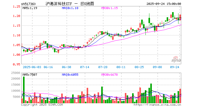 9月24日,沪港深科技ETF(517360)涨2.55%,成交额139.11万元。当日份额减少150.00万份,最新份额为2208.30万份,近20个交易日份额减少450.00万份。最新资产净值计算值为2669.39万元。