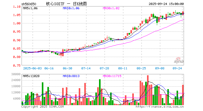 9月24日,核心50ETF(560650)涨2.00%,成交额207.63万元。当日份额减少150.00万份,最新份额为791.92万份,近20个交易日份额减少450.00万份。最新资产净值计算值为843.79万元。