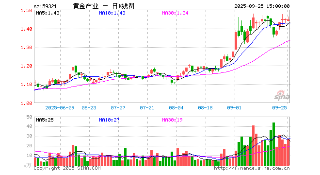 9月25日,黄金股票ETF(159321)跌0.21%,成交额3909.56万元。当日份额减少900.00万份,最新份额为1.49亿份,近20个交易日份额增加6750.00万份。最新资产净值计算值为2.15亿元。