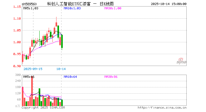 10月14日,科创人工智能ETF汇添富(589560)跌4.51%,成交额5994.95万元。当日份额增加3800.00万份,最新份额为5.27亿份,近20个交易日份额减少5.54亿份。最新资产净值计算值为5.14亿元。