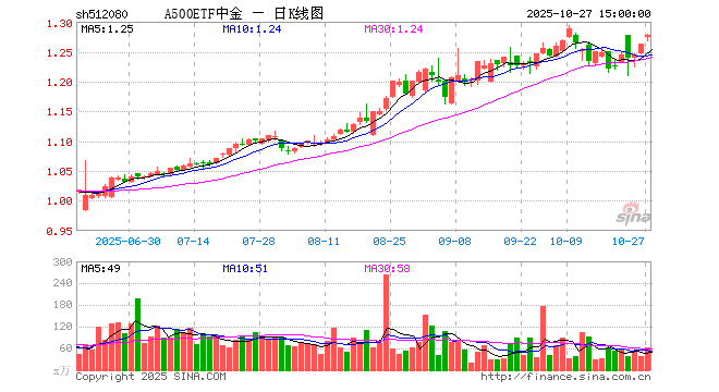10月27日,A500ETF中金(512080)涨1.19%,成交额7968.64万元。当日份额减少1500.00万份,最新份额为8.39亿份,近20个交易日份额减少1.20亿份。最新资产净值计算值为10.73亿元。