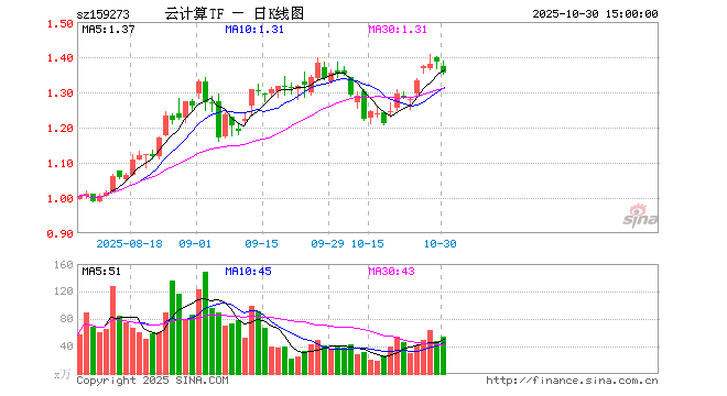 10月30日,云计算ETF汇添富(159273)跌2.24%,成交额7401.25万元。当日份额减少3200.00万份,最新份额为11.82亿份,近20个交易日份额减少1.18亿份。最新资产净值计算值为16.08亿元。