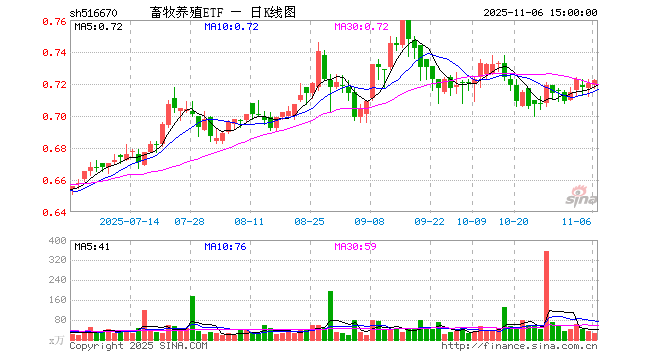 11月6日,畜牧养殖ETF(516670)涨0.28%,成交额1967.75万元。当日份额增加400.00万份,最新份额为19.68亿份,近20个交易日份额增加7.44亿份。最新资产净值计算值为14.19亿元。