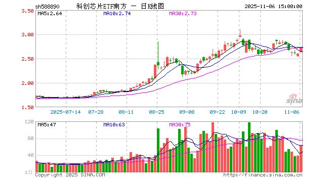 11月7日,科创芯片ETF南方(588890)跌1.47%,成交额1.42亿元。当日份额增加300.00万份,最新份额为10.65亿份,近20个交易日份额增加1.62亿份。最新资产净值计算值为28.49亿元。