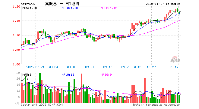 11月17日,高股息ETF(159207)跌0.59%,成交额892.23万元。当日份额增加100.00万份,最新份额为2.19亿份,近20个交易日份额增加1400.00万份。最新资产净值计算值为2.58亿元。