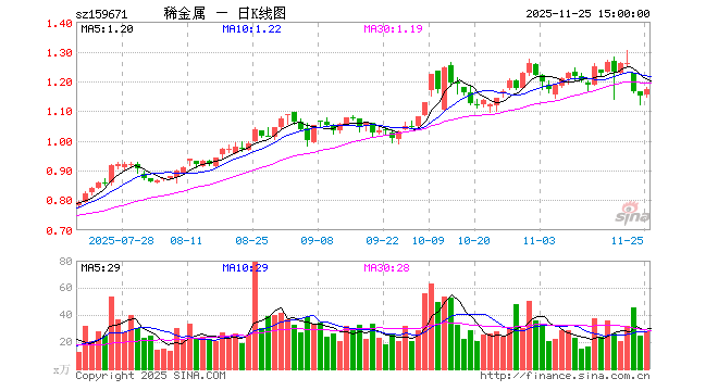 11月25日,稀有金属ETF基金(159671)涨1.91%,成交额3258.94万元。当日份额增加350.00万份,最新份额为5.40亿份,近20个交易日份额减少3850.00万份。最新资产净值计算值为6.33亿元。