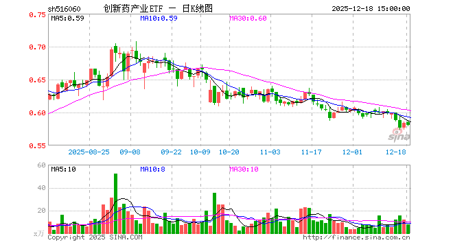 12月18日,创新药产业ETF(516060)跌0.51%,成交额434.39万元。当日份额减少100.00万份,最新份额为2.65亿份,近20个交易日份额增加300.00万份。最新资产净值计算值为1.54亿元。
