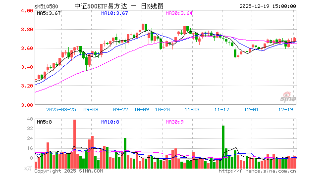 12月19日,中证500ETF易方达(510580)涨0.95%,成交额3516.47万元。当日份额增加80.00万份,最新份额为7.61亿份,近20个交易日份额增加1600.00万份。最新资产净值计算值为28.14亿元。