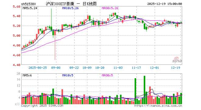 沪深300ETF泰康(515380)业绩比较基准为沪深300指数收益率,管理人为泰康基金管理有限公司,基金经理为魏军,成立(2019-12-27)以来回报为28.15%,近一个月回报为-0.35%。
