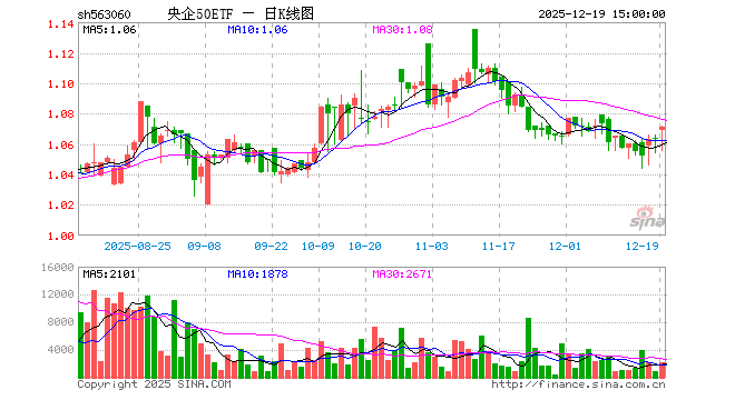 12月19日,央企50ETF(563060)涨0.66%,成交额23.05万元。当日份额增加3500.00万份,最新份额为4.01亿份,近20个交易日份额增加3.55亿份。最新资产净值计算值为4.28亿元。