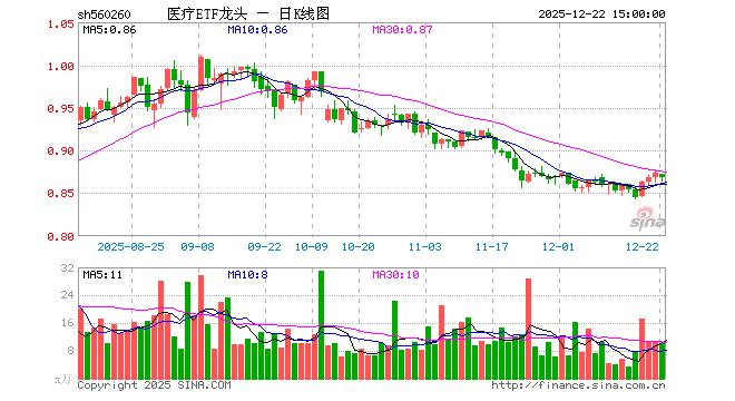12月22日,医疗ETF龙头(560260)跌0.46%,成交额891.20万元。当日份额增加100.00万份,最新份额为17.64亿份,近20个交易日份额增加3900.00万份。最新资产净值计算值为15.31亿元。