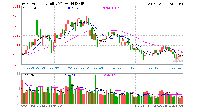 机器人ETF南方(159258)业绩比较基准为中证机器人指数收益率,管理人为南方基金管理股份有限公司,基金经理为潘水洋,成立(2025-07-24)以来回报为6.43%,近一个月回报为2.38%。