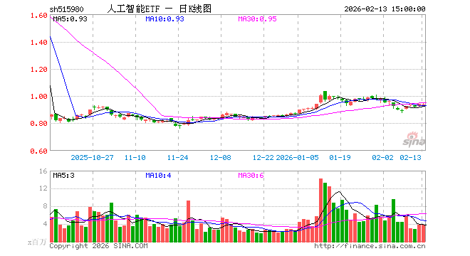 2月13日,人工智能ETF(515980)跌0.43%,成交额3.60亿元。当日份额增加1.35亿份,最新份额为111.47亿份,近20个交易日份额增加13.50亿份。最新资产净值计算值为104.01亿元。