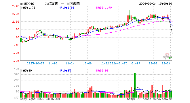 2月24日,创业板人工智能ETF富国(159246)涨1.23%,成交额9822.85万元。当日份额增加1.00亿份,最新份额为33.28亿份,近20个交易日份额增加15.53亿份。最新资产净值计算值为35.69亿元。
