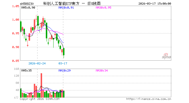 3月17日,科创人工智能ETF南方(589230)跌2.47%,成交额3206.75万元。当日份额增加1000.00万份,最新份额为5.51亿份,近20个交易日份额增加5000.00万份。最新资产净值计算值为4.77亿元。