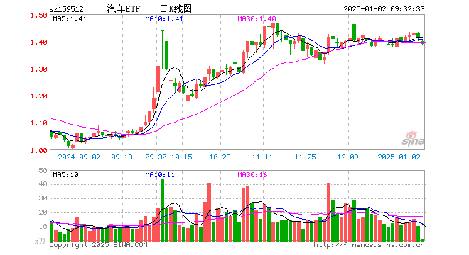 1月2日,汽车ETF(159512)开盘跌0.64%,报1.400元。汽车ETF(159512)重仓股方面,比亚迪开盘涨0.12%,长安汽车涨0.07%,赛力斯跌1.30%,上汽集团跌1.25%,长城汽车跌0.15%,江淮汽车跌0.83%,宇通客车跌0.30%,北汽蓝谷涨0.00%,广汽集团跌0.54%,福田汽车涨0.00%。