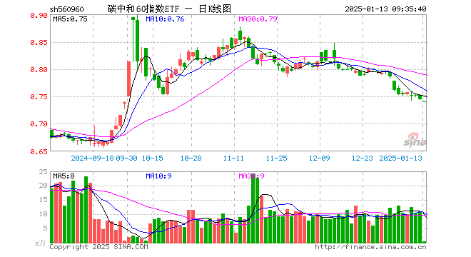 1月13日,碳中和60指数ETF(560960)开盘跌0.67%,报0.740元。碳中和60指数ETF(560960)重仓股方面,宁德时代开盘跌1.02%,比亚迪跌1.14%,长江电力跌0.24%,阳光电源跌0.91%,汇川技术跌0.82%,隆基绿能跌0.76%,中国核电跌1.70%,TCL科技跌0.84%,特变电工跌0.75%,三峡能源跌0.24%。