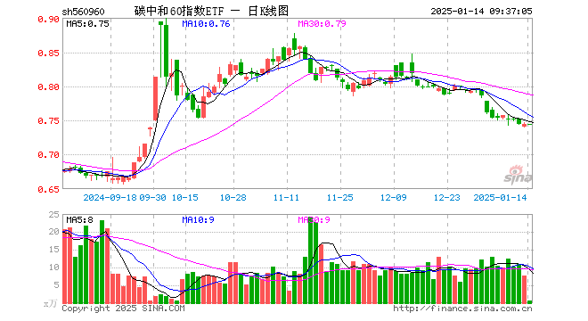 碳中和60指数ETF(560960)业绩比较基准为中证碳中和60指数收益率,管理人为摩根基金管理(中国)有限公司,基金经理为毛时超,成立(2022-12-29)以来回报为-25.63%,近一个月回报为-7.20%。