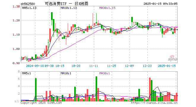 1月15日,可选消费ETF(562580)开盘涨0.00%,报1.147元。可选消费ETF(562580)重仓股方面,美的集团开盘涨0.03%,比亚迪跌0.04%,格力电器跌0.26%,海尔智家跌0.04%,福耀玻璃跌0.39%,中国中免跌0.13%,长安汽车跌0.23%,赛力斯跌0.51%,上汽集团跌1.47%,三花智控涨2.97%。