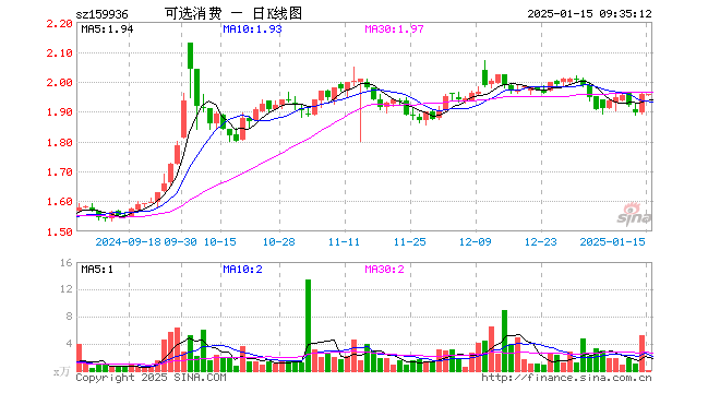 1月15日,可选消费ETF(159936)开盘跌0.20%,报1.955元。可选消费ETF(159936)重仓股方面,美的集团开盘涨0.03%,比亚迪跌0.04%,格力电器跌0.26%,海尔智家跌0.04%,福耀玻璃跌0.39%,中国中免跌0.13%,长安汽车跌0.23%,赛力斯跌0.51%,上汽集团跌1.47%,三花智控涨2.97%。