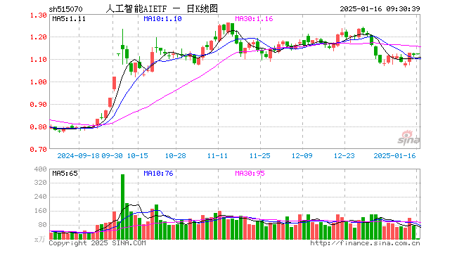 1月16日,人工智能AIETF(515070)开盘涨0.81%,报1.125元。人工智能AIETF(515070)重仓股方面,中际旭创开盘涨1.21%,海康威视涨0.14%,新易盛涨1.16%,韦尔股份涨0.55%,科大讯飞涨1.05%,中科曙光涨0.00%,金山办公涨0.27%,澜起科技涨1.06%,寒武纪跌1.14%,紫光股份涨0.79%。